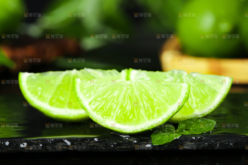 黑底上的青柠檬果肉