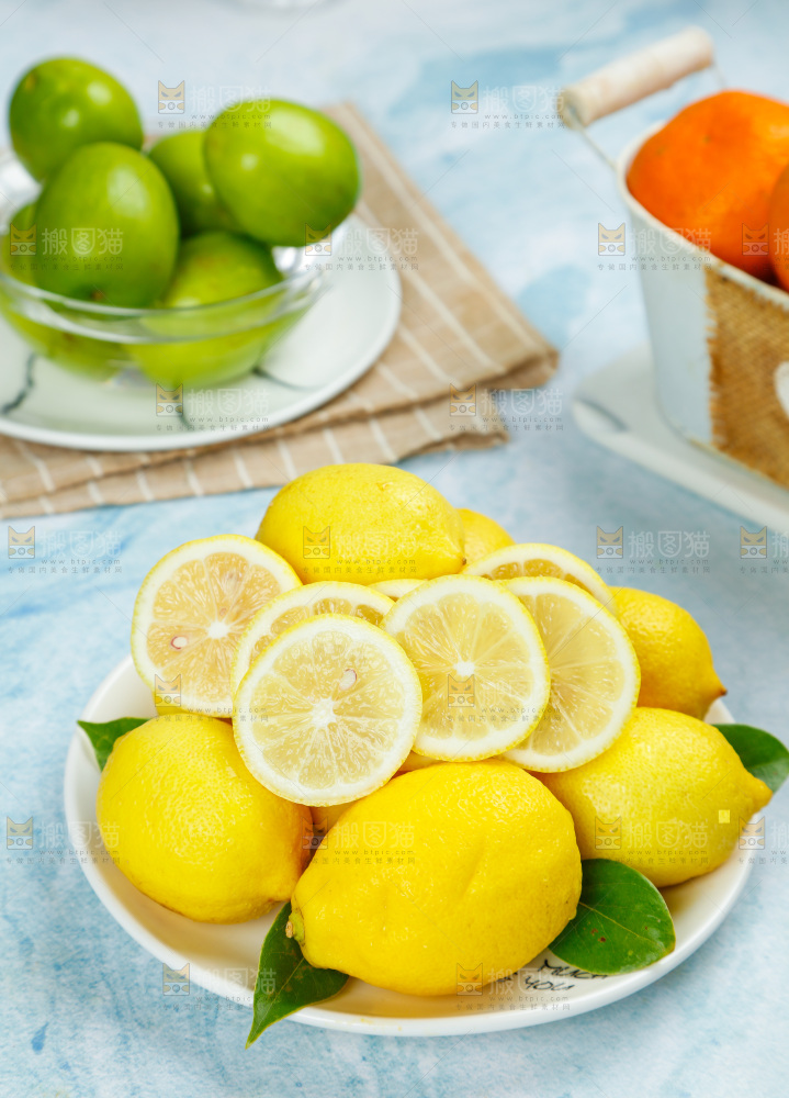 浅底上摆放着黄柠檬