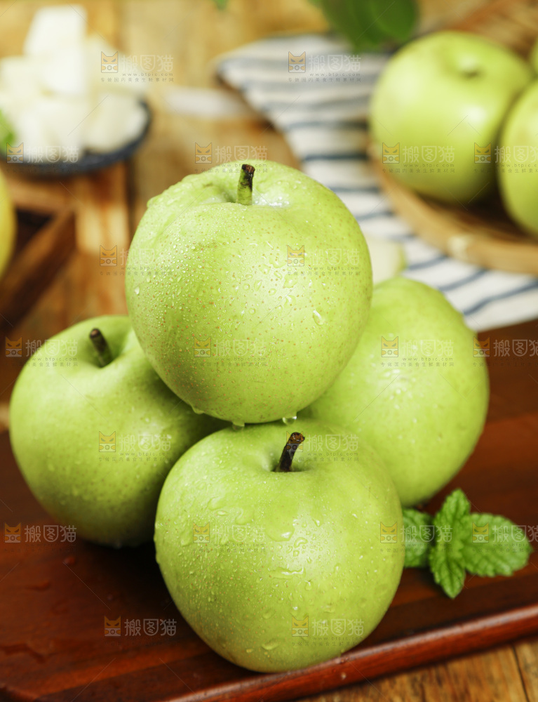 木底上的苹果梨