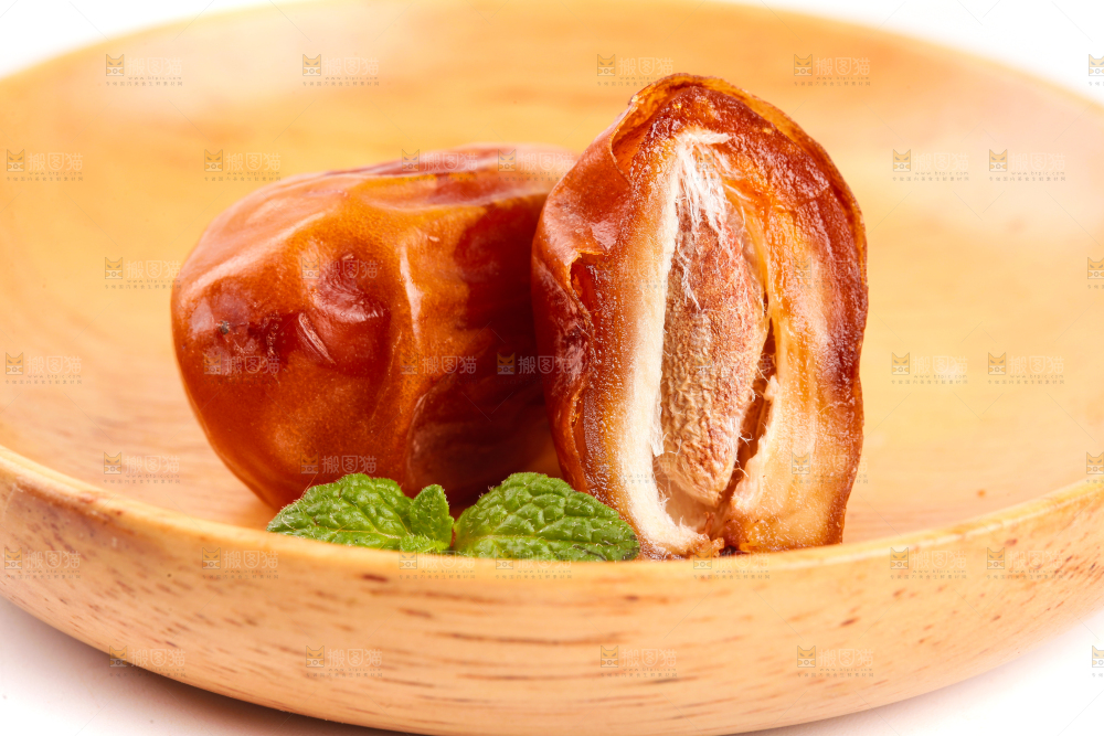 盘子里放着黄椰枣