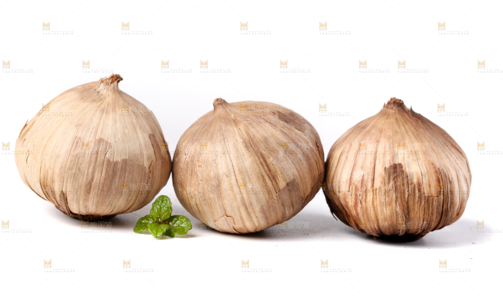 白底上摆放着独头黑蒜