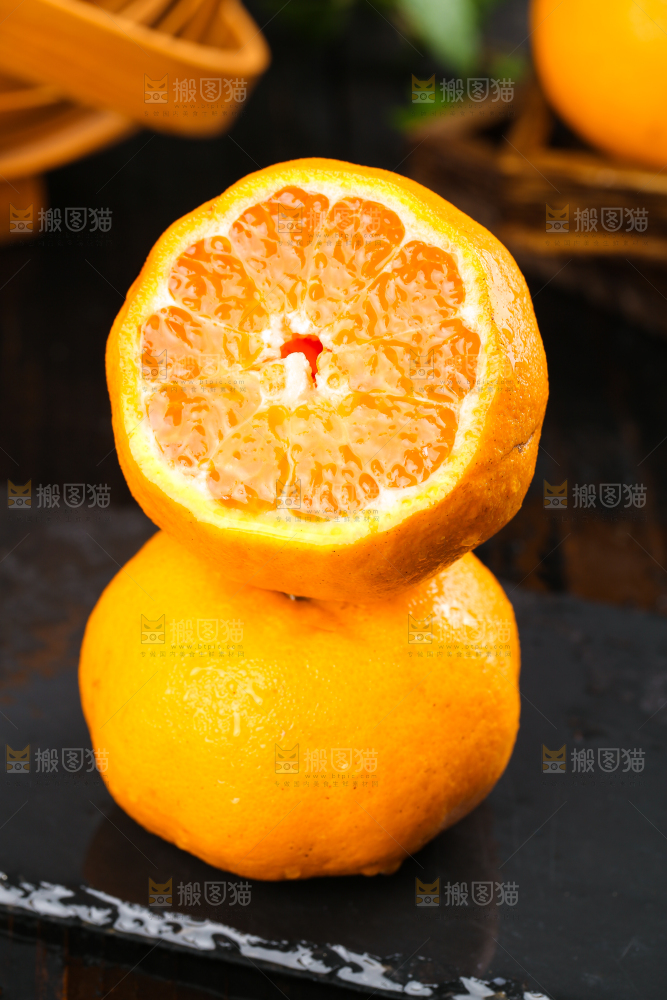黑石板上的椪柑橘