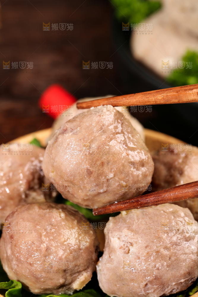 筷子夹着牛肉丸