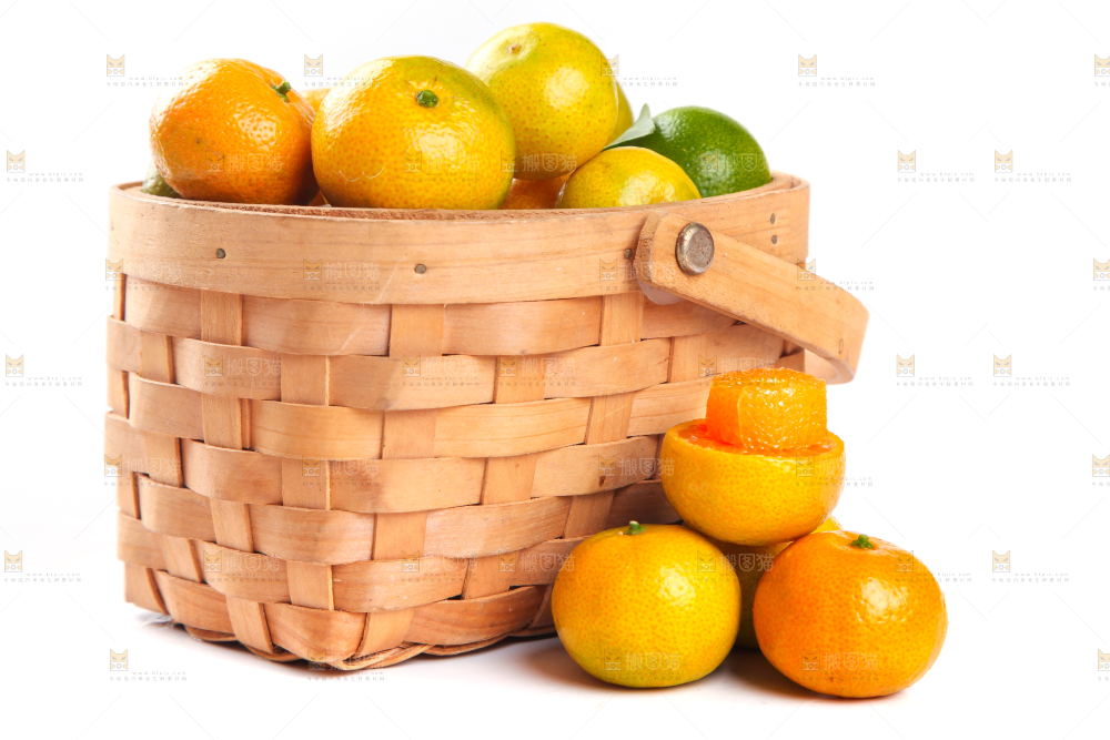 一筐清香蜜橘放在白底上
