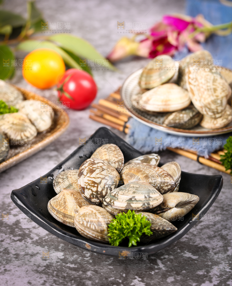 石板上放着一盘花甲