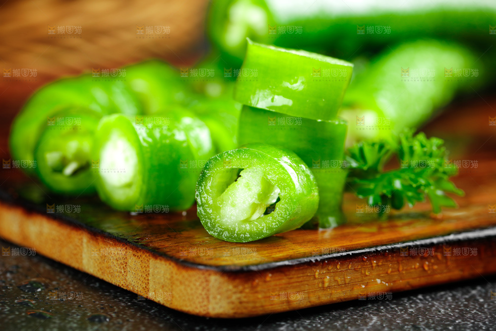 黑底上的新鲜青线椒