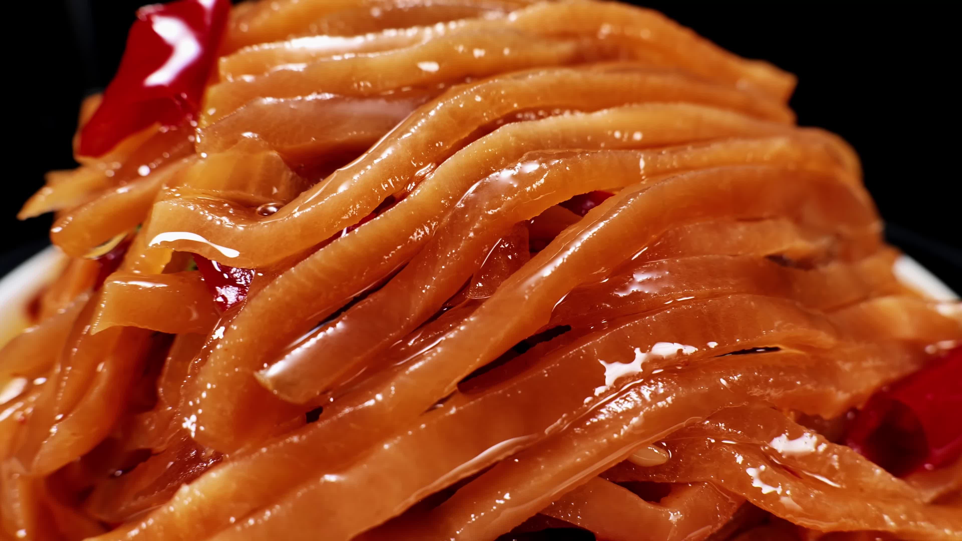 木板上放着咸菜条