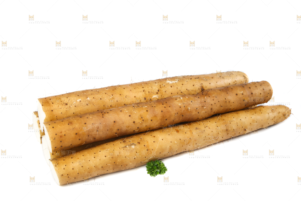 白底上的新鲜山药