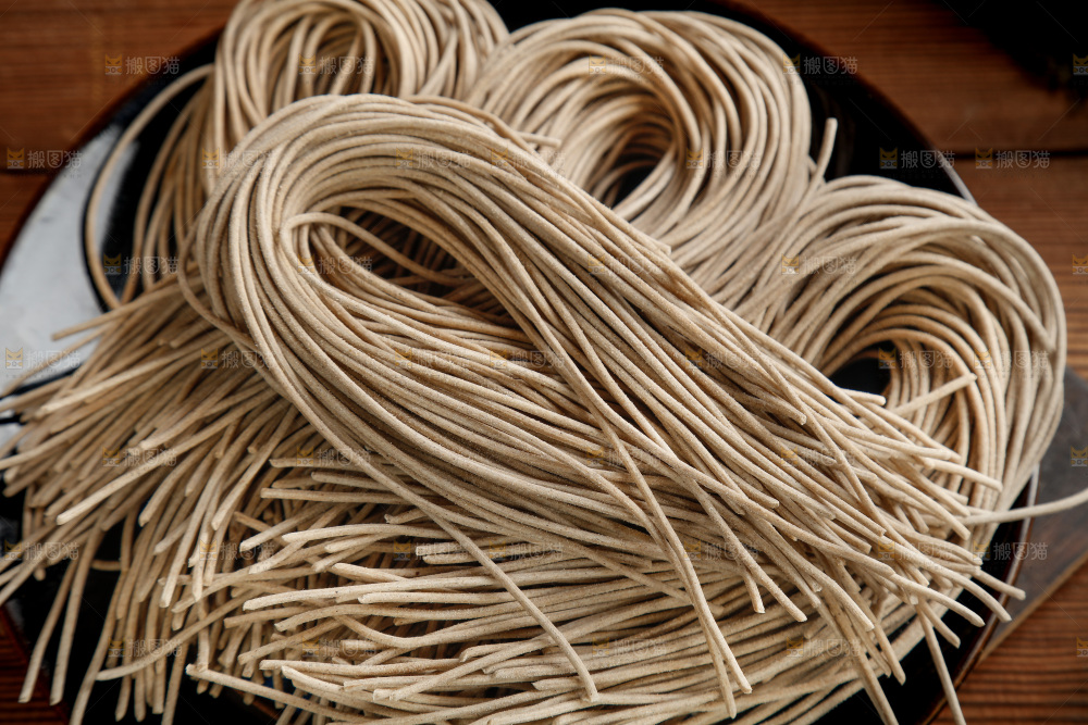 木底上放着一盘荞麦面