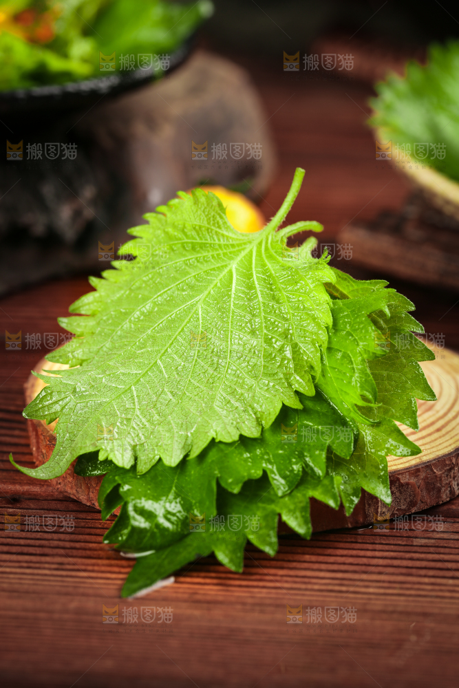 木板上的青紫苏叶