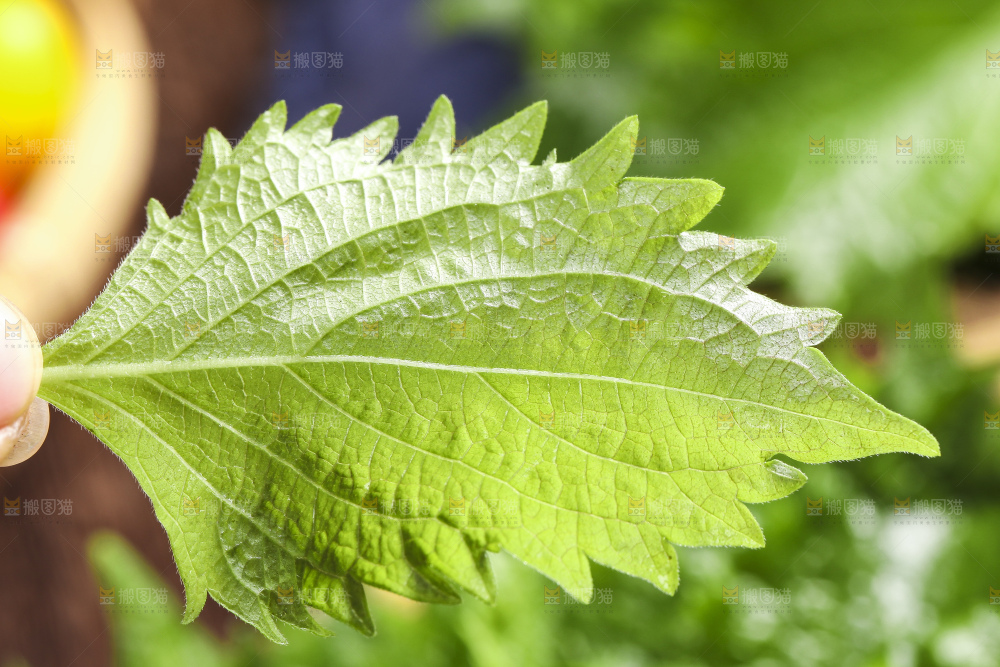 手拿紫苏叶