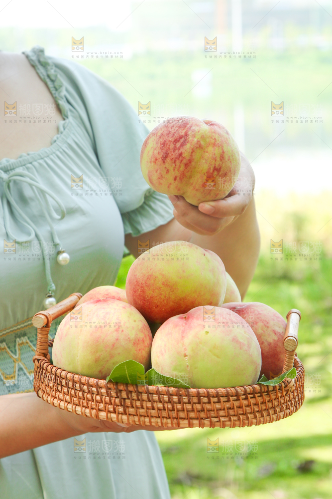 手里端着一篮桃子