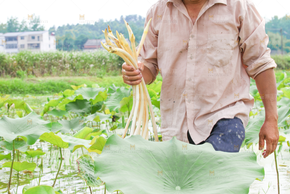 手里拿着新鲜采摘的藕尖