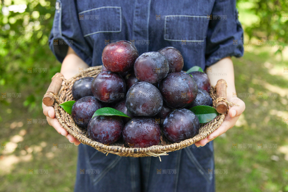 手里端着一篮新鲜黑布李