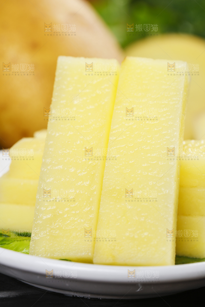 黑底上放着切好的土豆条