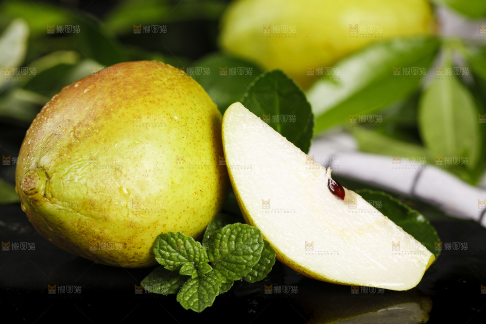 黑底上摆放着新鲜香梨
