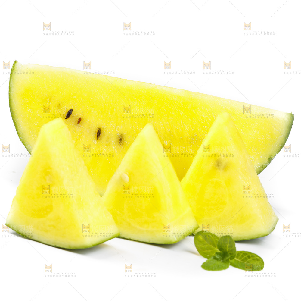 切开的特小凤黄肉西瓜放在白底上