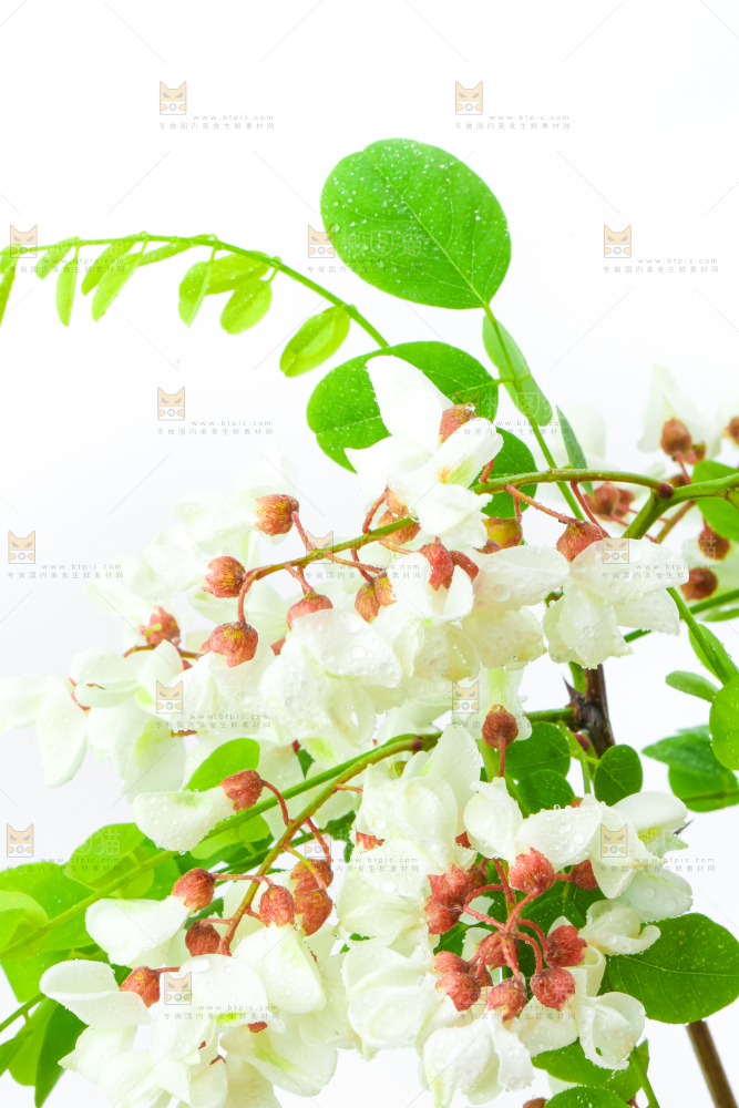 白底上放着杨槐树花
