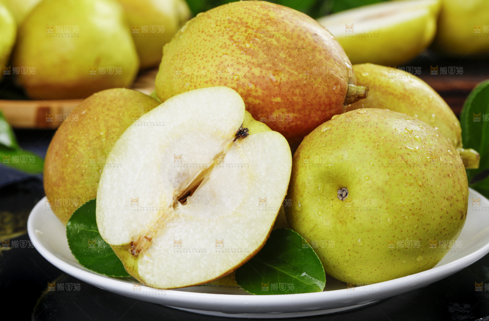 石板上放着一盘切开的小香梨