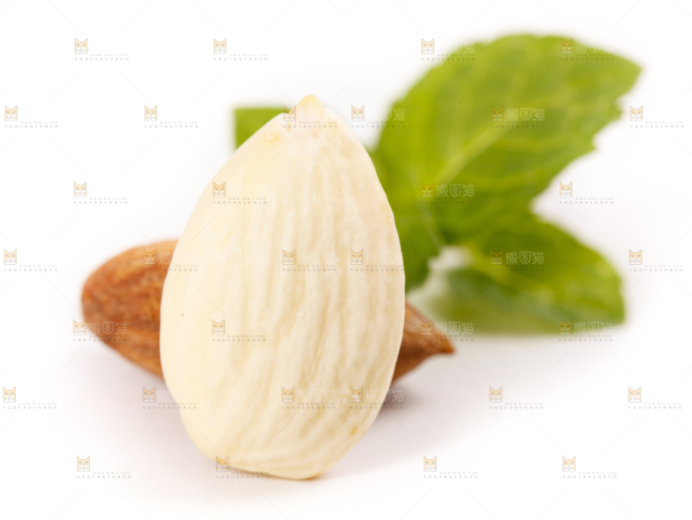 白底上摆放着巴旦木