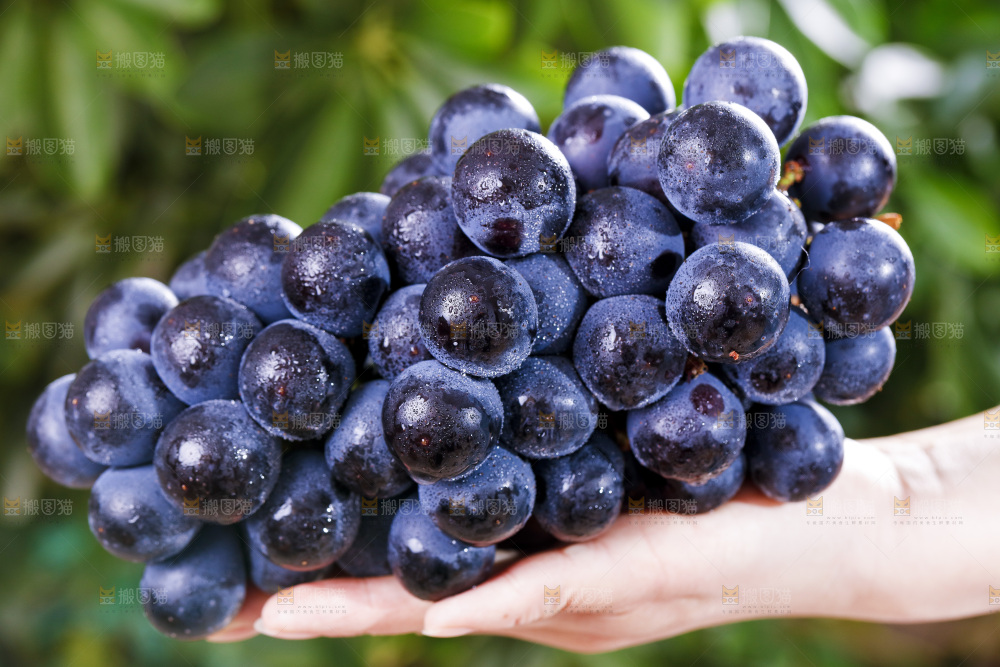手里拿着黑加仑葡萄