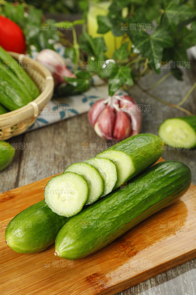 新鲜的山东水果黄瓜放在木板上