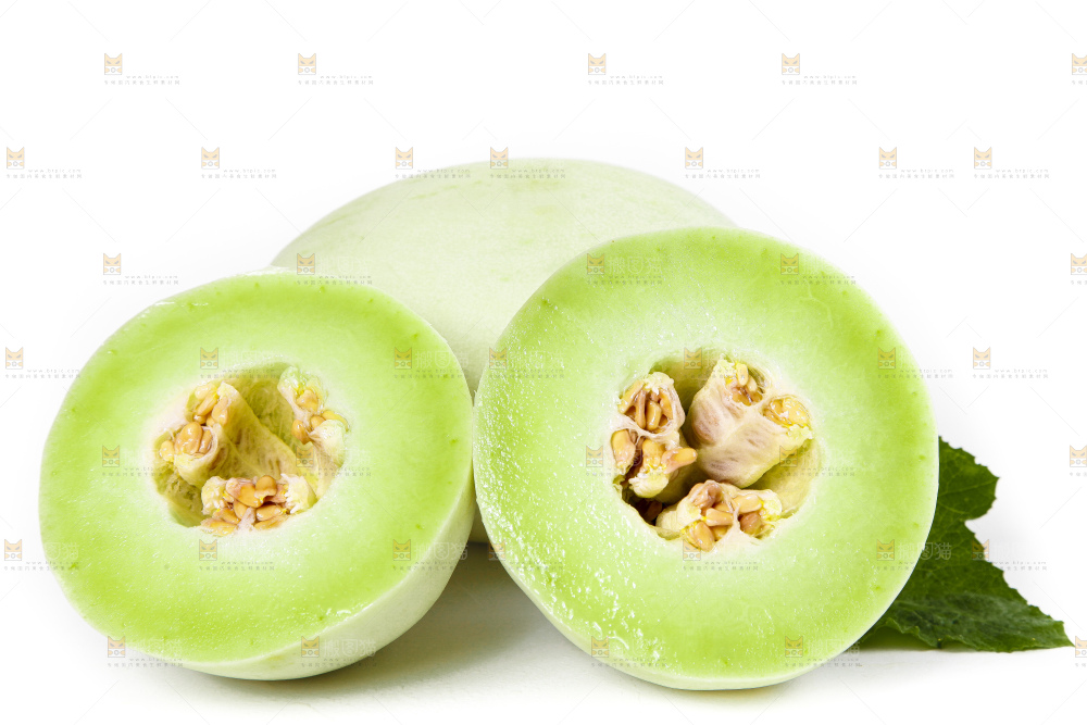 白底上摆放着玉菇蜜瓜