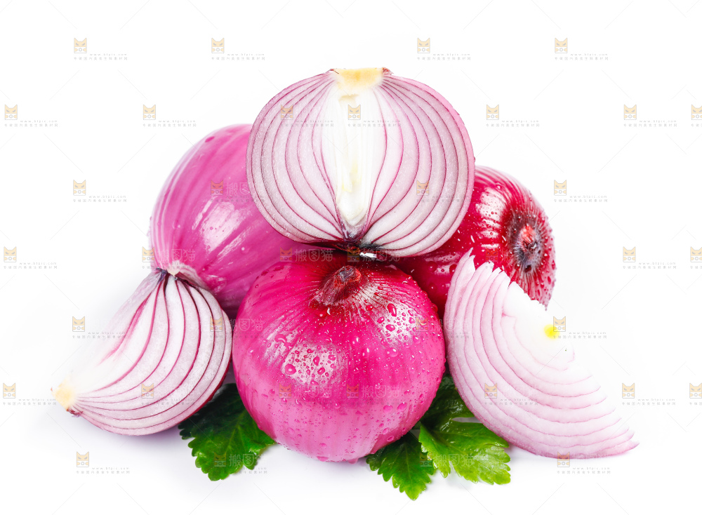 白底上摆放着新鲜洋葱