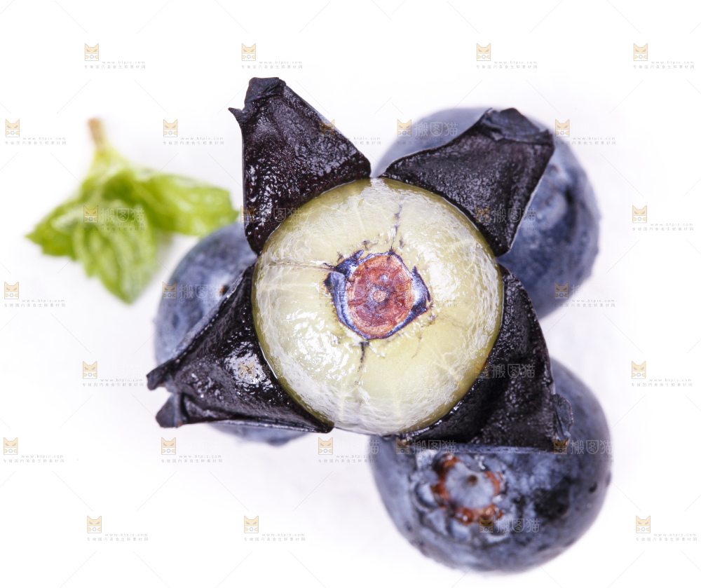 白底上摆放着蓝莓果