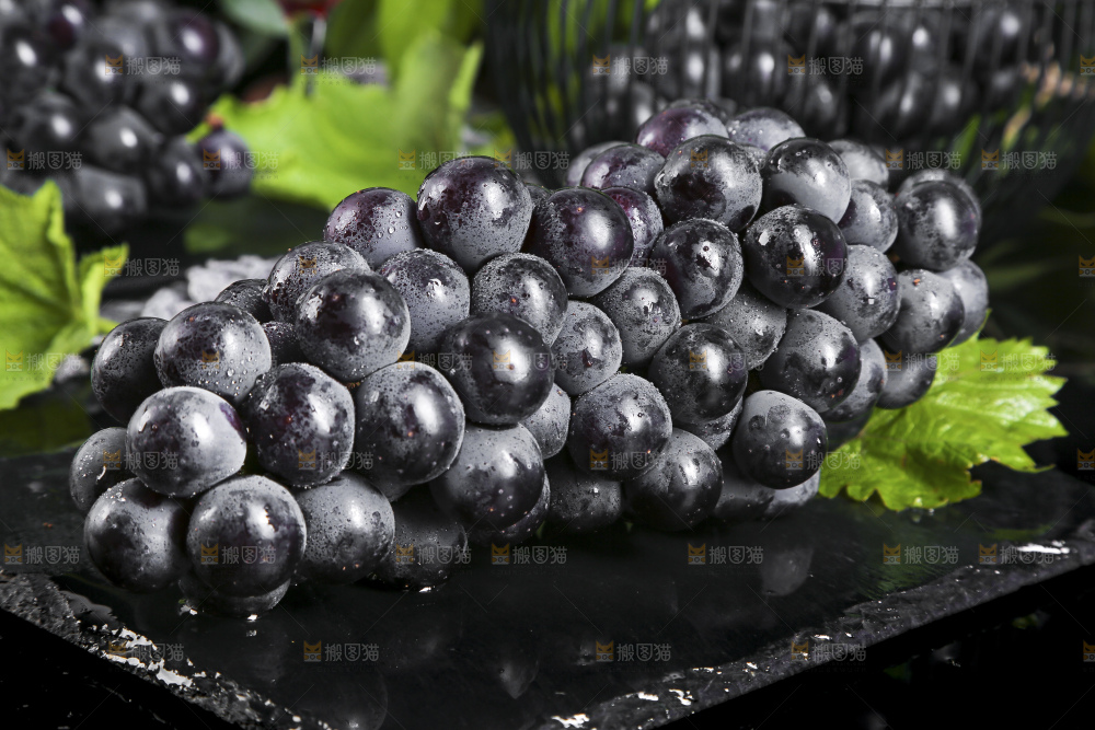 黑底上摆放着云南夏黑葡萄