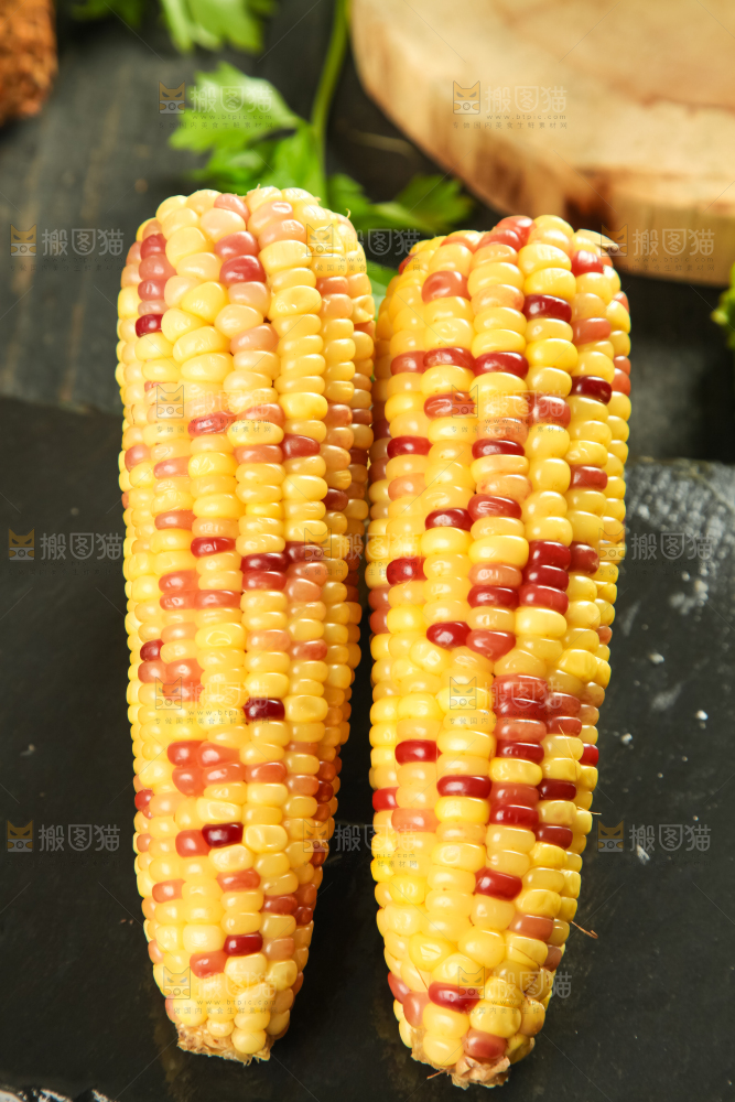 黑石板上放着糯玉米