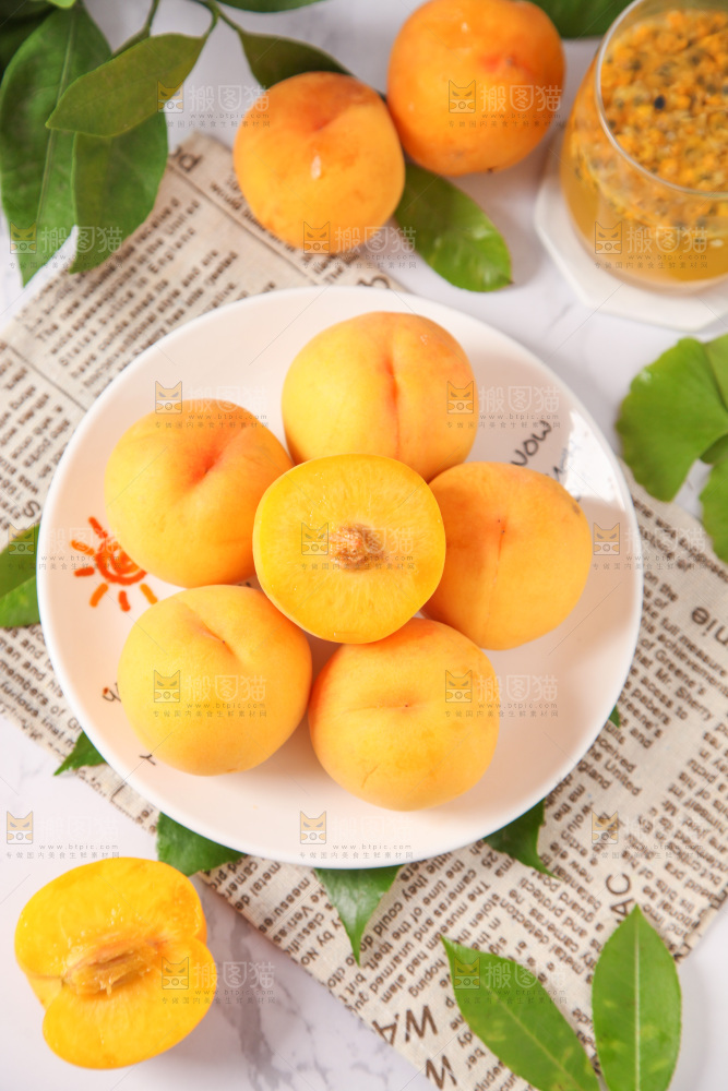 盘子里装着黄桃