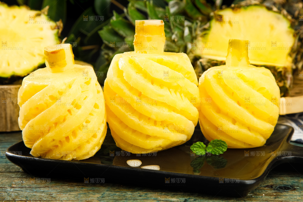 黑盘子上放着泰国小菠萝