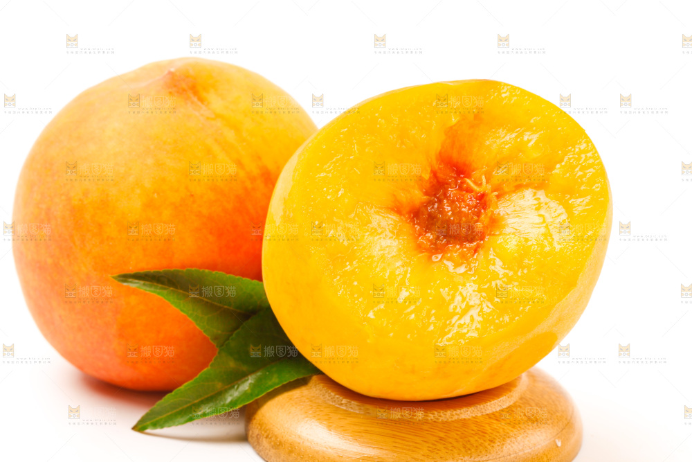 白底上的新鲜黄桃