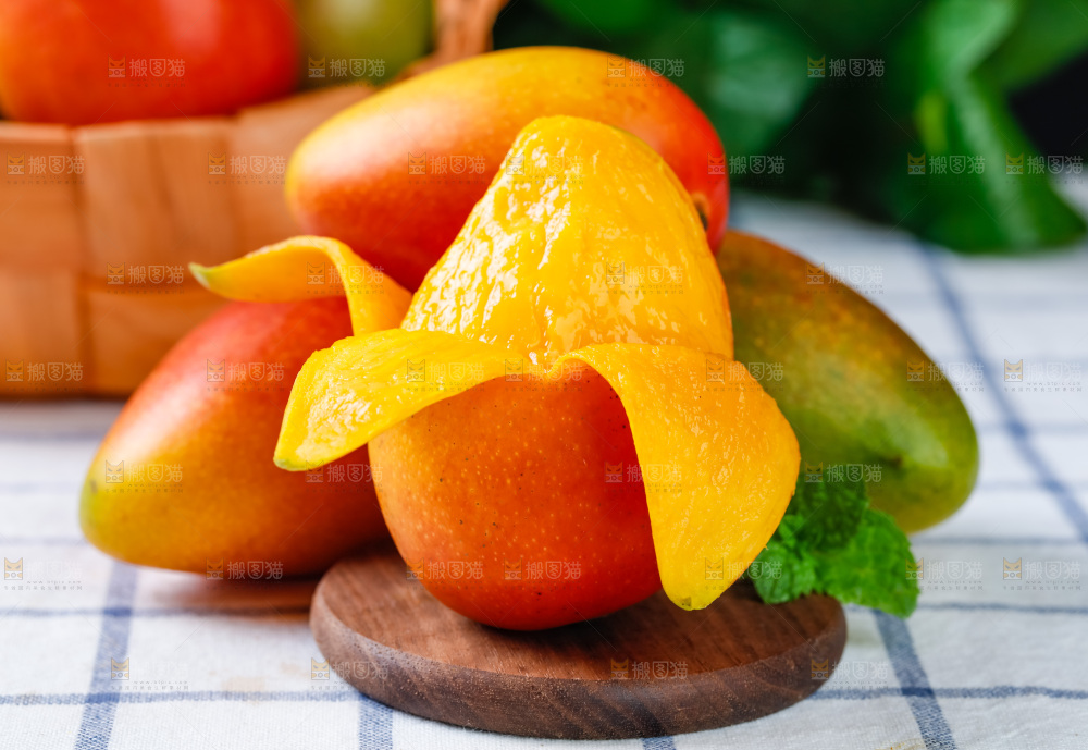格子布上放着海南贵妃芒