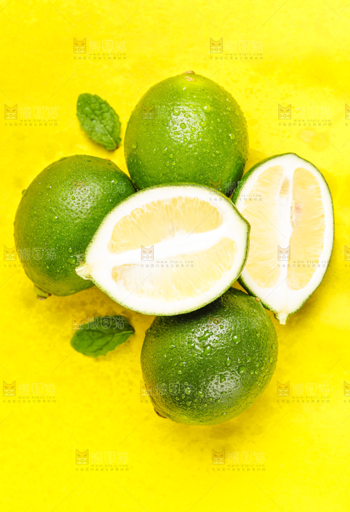 黄底上放着青柠檬