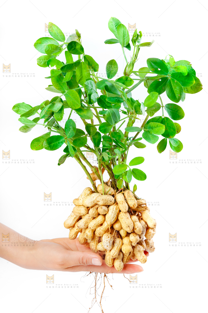 白底上手里拿着新鲜带壳花生