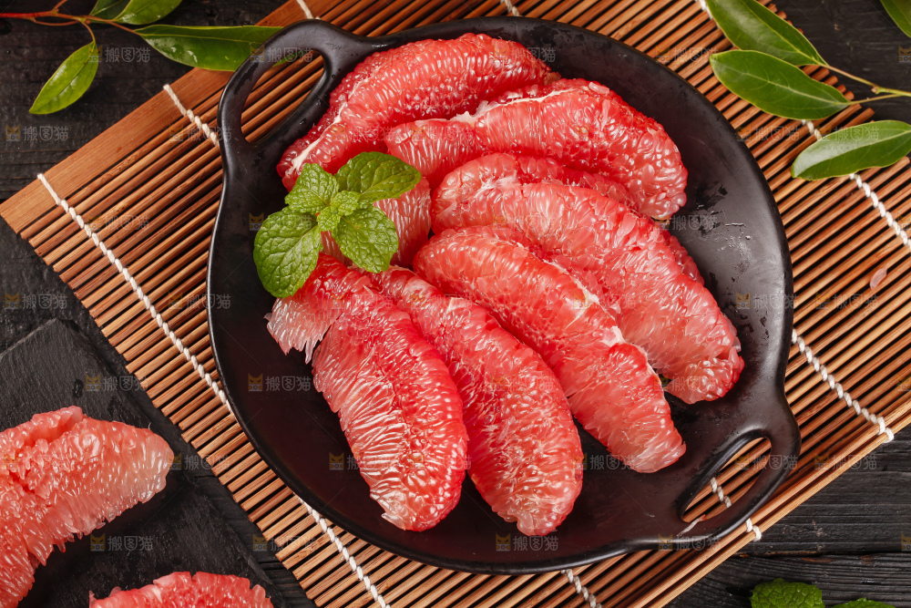 盘子里的红心蜜柚果肉