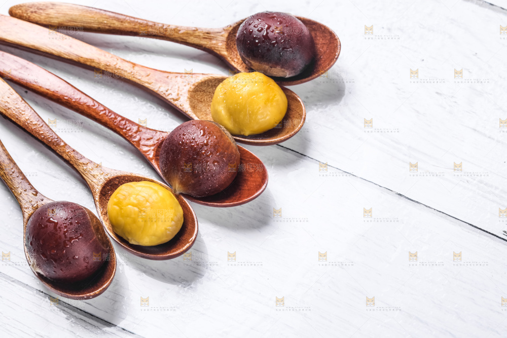 浅底上摆放着生栗子