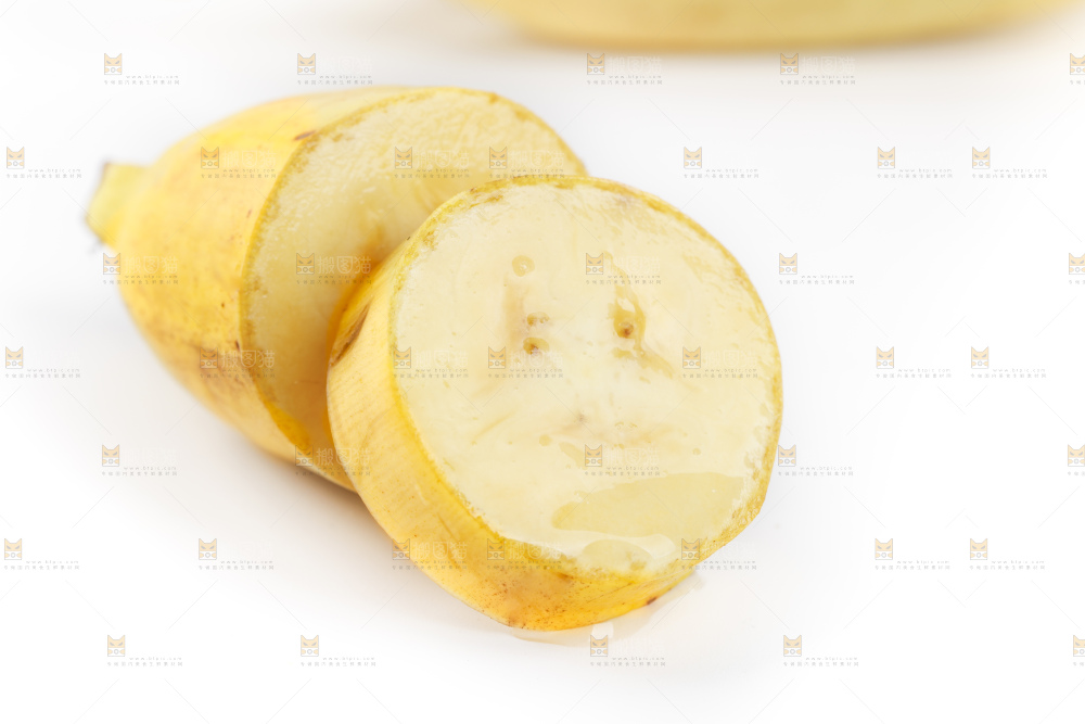 白底上放着切成块的香蕉果肉