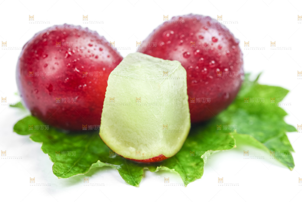 绿叶上放着红提