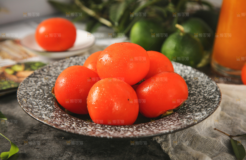 盘子里装着水晶柿子