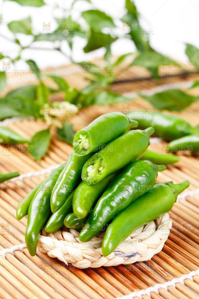 竹底上摆放着青米椒