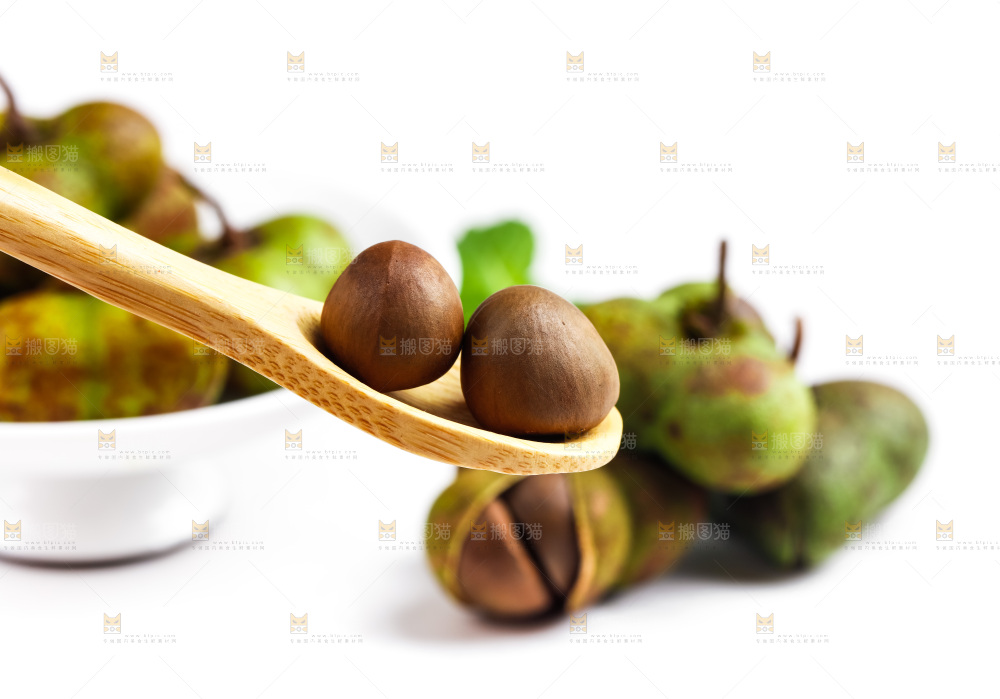白底上摆放着茶树果