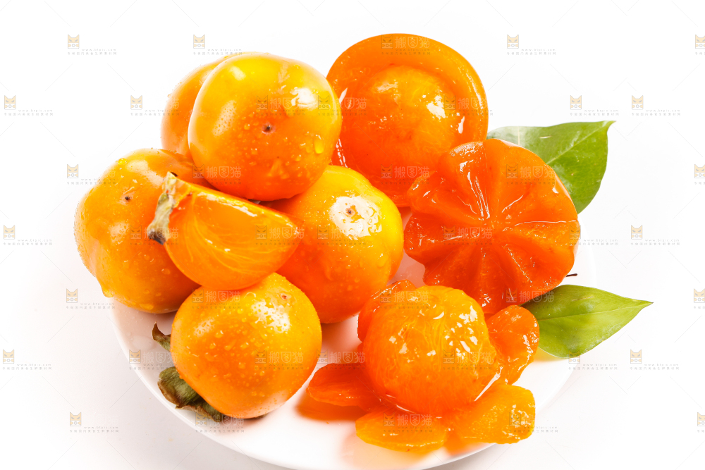 白底上放着甜柿子