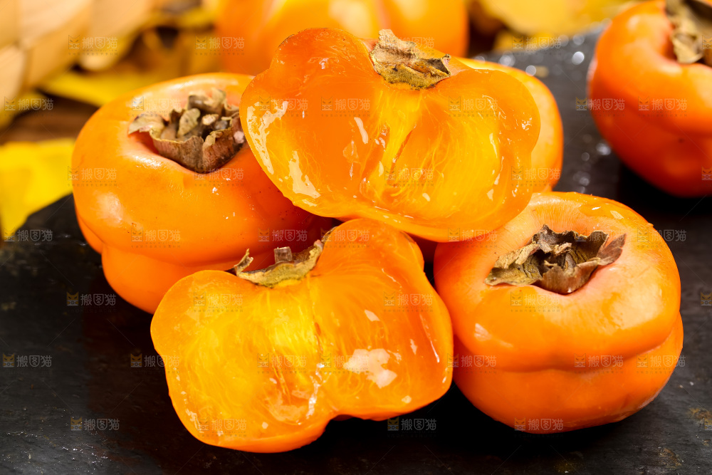 新鲜磨盘柿