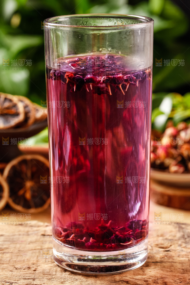 杯子里装着黑枸杞茶