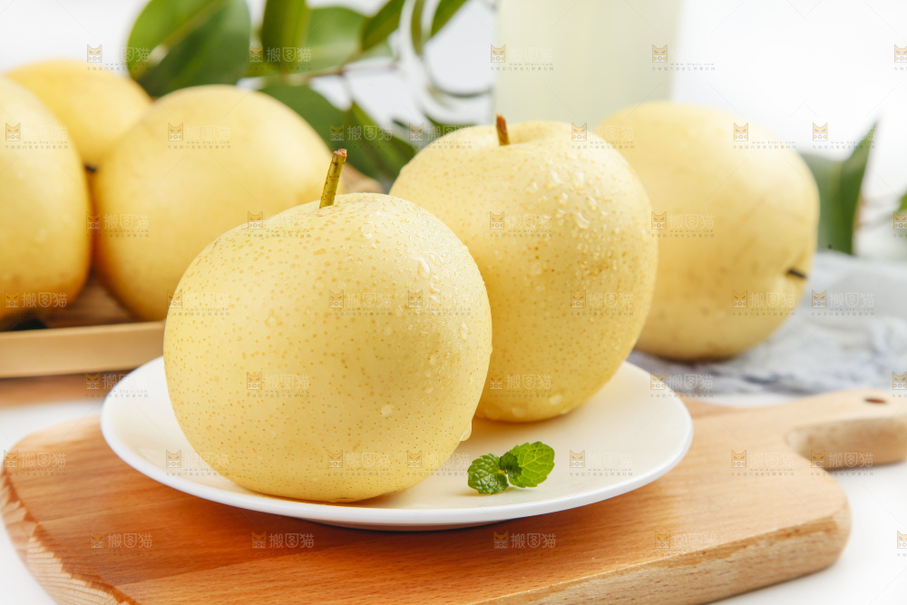 盘子里装着新鲜梨子