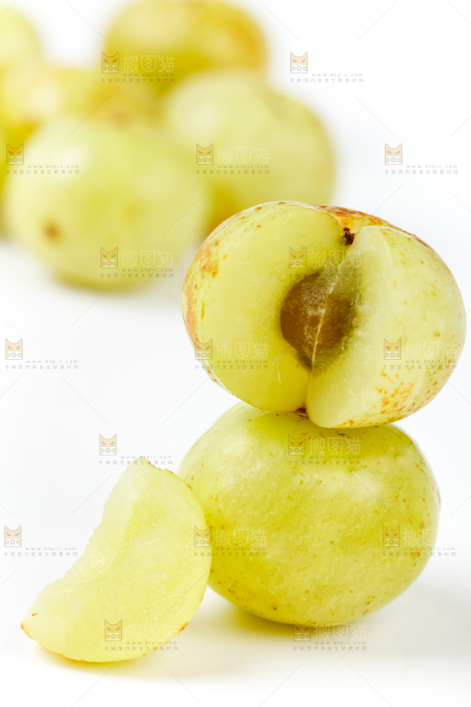 白底上摆放着余甘果