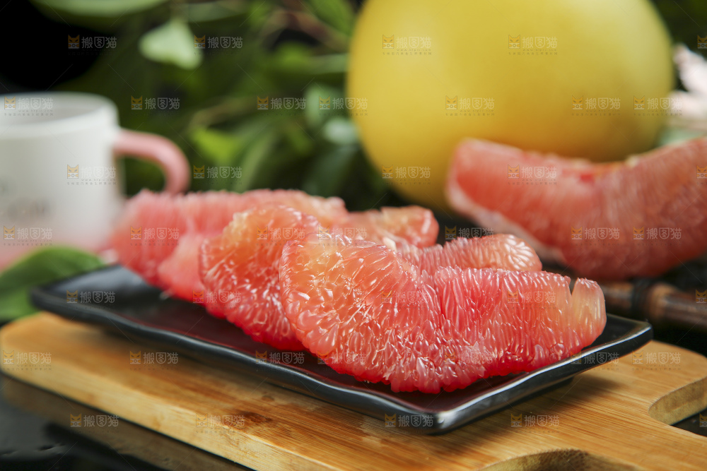木板上放着红心蜜柚